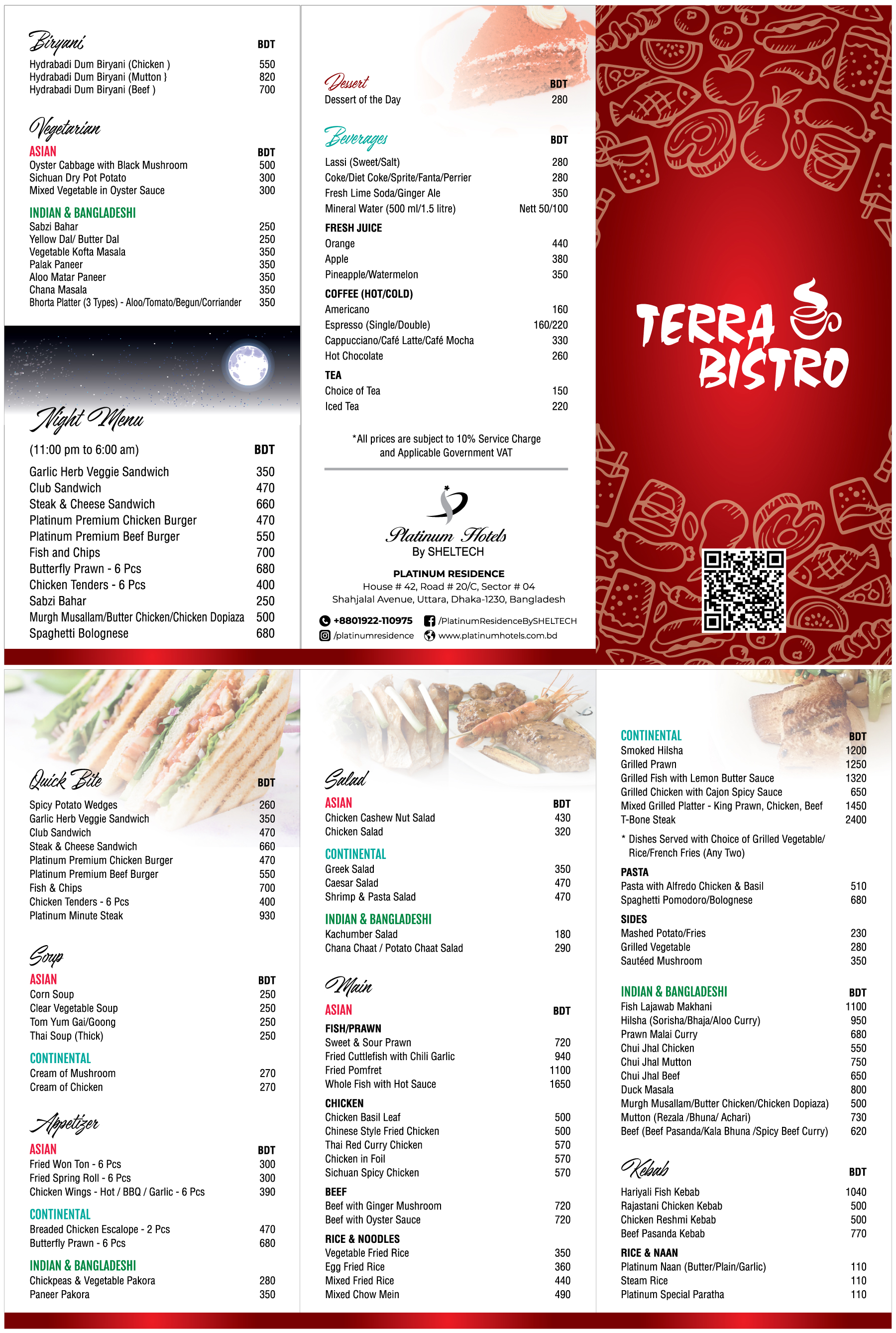 reservation@platinumhotels.com.bdTERRA BISTRO, UTTARA